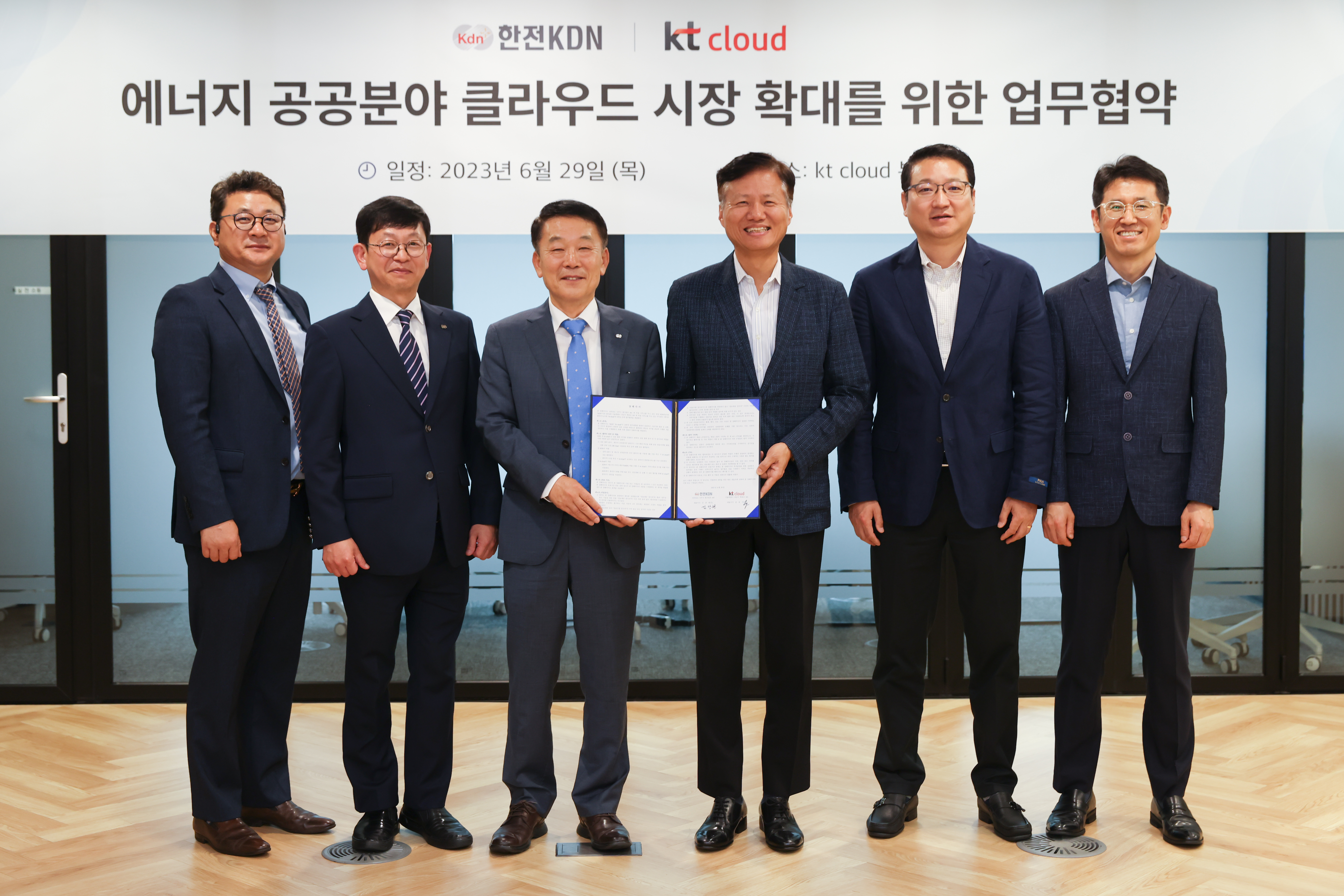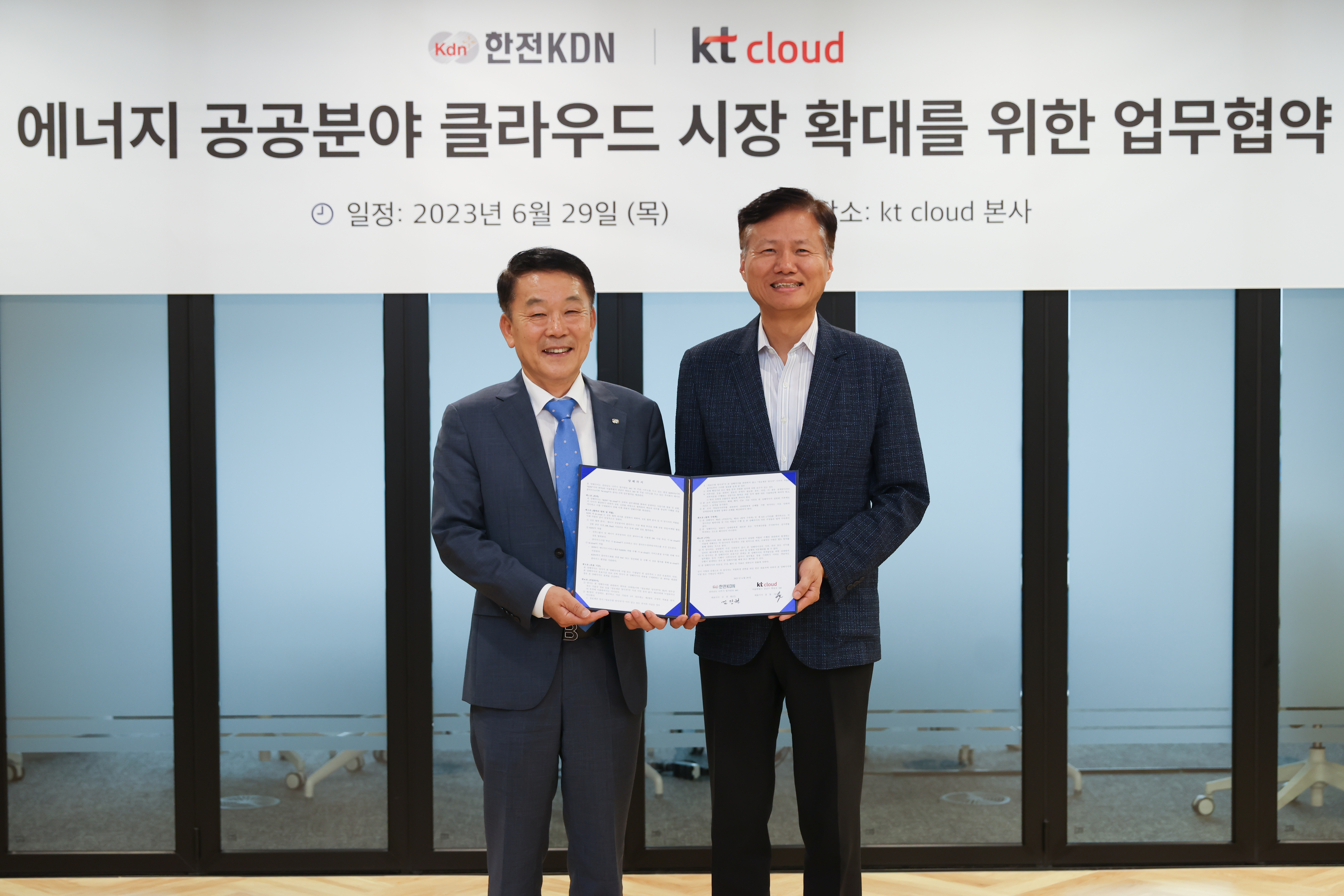 kt cloud(www.ktcloud.com, 대표이사 윤동식)는 한국전력공사 산하의 한전KDN과 에너지 공공분야 클라우드 사업 협력에 나선다고 30일 밝혔다. 29일 kt cloud 본사에서 열린 협약식에서는 kt cloud 윤동식 대표, 한전KDN 김장현 사장을 비롯한 주요 관계자들이 참석해 향후 사업 방향에 대해 논의했다.