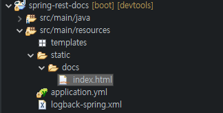 다시 Terminal에서 아래와 같은 명령어를 실행하여 gradle build를 진행합니다. build가 완료되면 build/docs/asciidoc/index.html 파일이 application의 정적 디렉토리 위치에서 load 될 수 있도록 src/main/resources/static/docs/ 로 copy 됩니다.